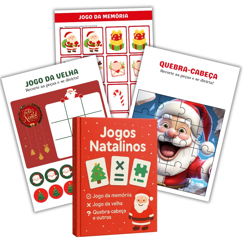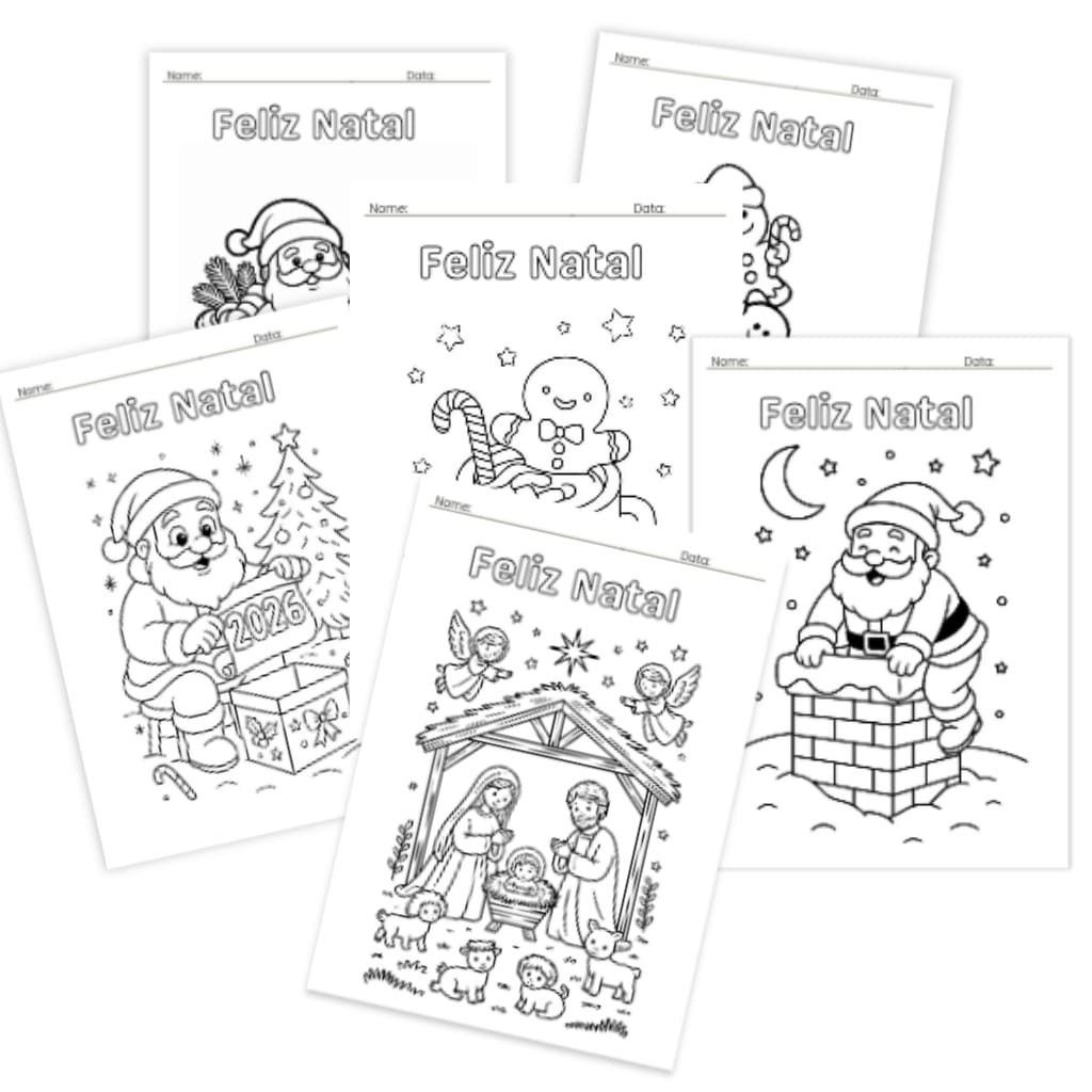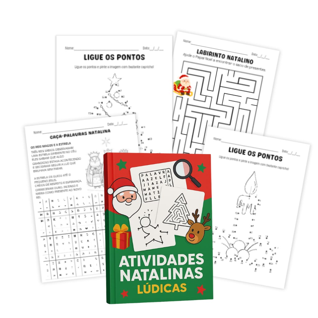 Atividades, jogos, molduras, pinturas e lembranças prontas para imprimir que transformam qualquer momento em um Natal mágico e inesquecível.